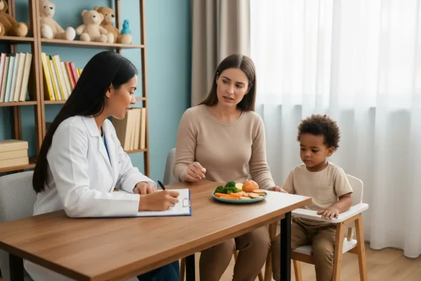 Nessas consultas de rotina, há tempo para revisar como a família está, o que preocupa e quais ajustes fazem sentido naquele momento.
