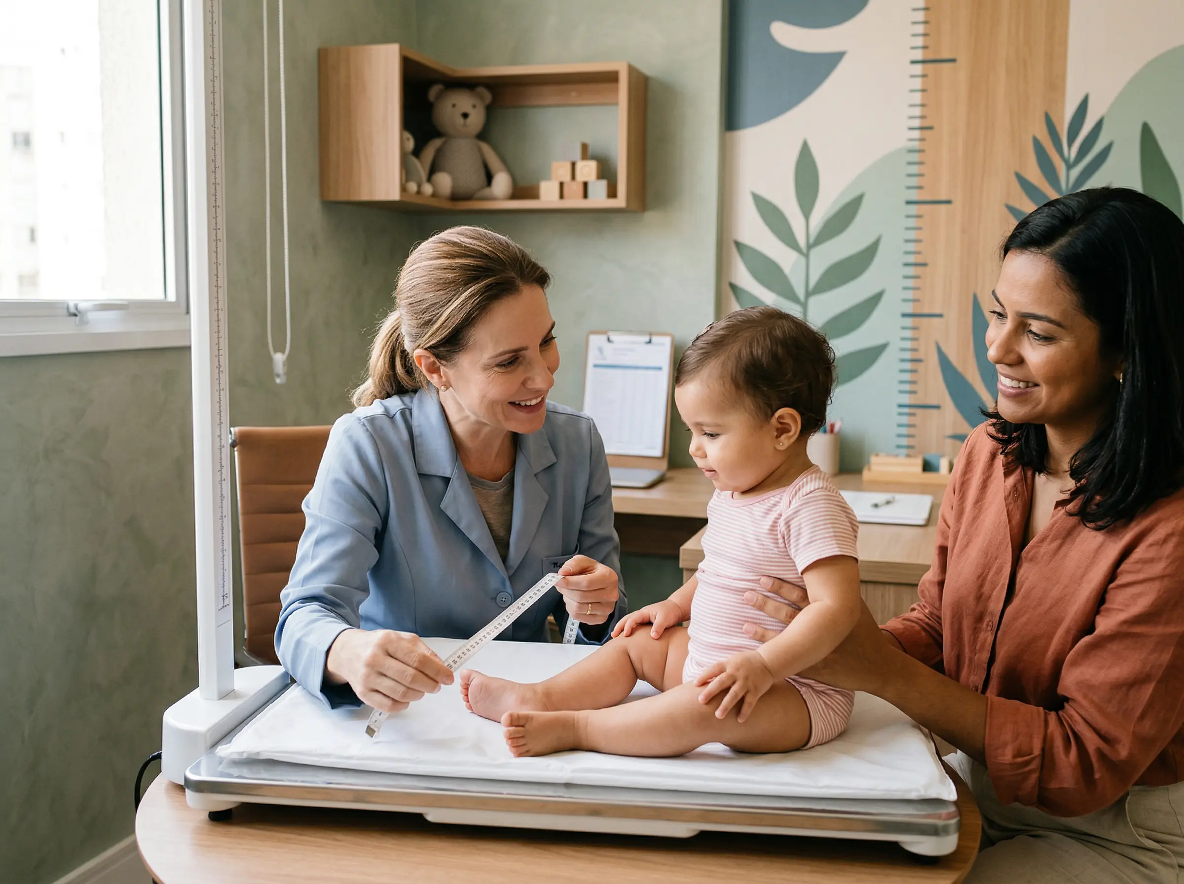 Para dúvidas específicas sobre crescimento, a avaliação pediátrica inclui: