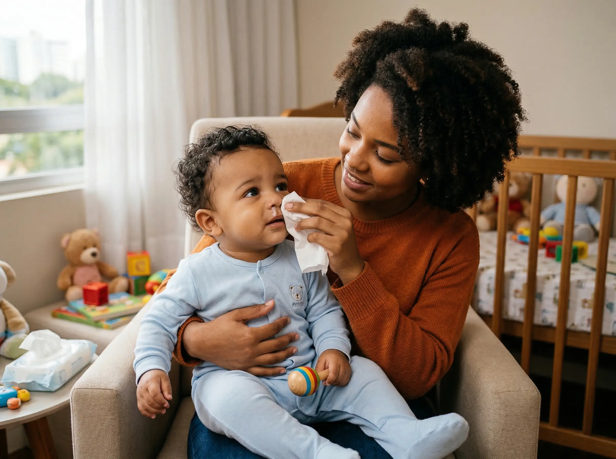 Bebê resfriado dormindo mal é comum e tem solução. Saiba o que é esperado, como preparar o ambiente, aliviar o desconforto noturno e quando procurar o pediatra.